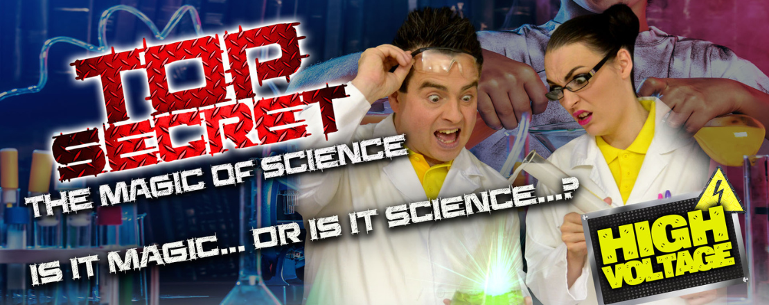 Top Secret is a fast moving colourful magical science show suitable for the whole family filled with mystery, suspense, and lots and lots of mess!